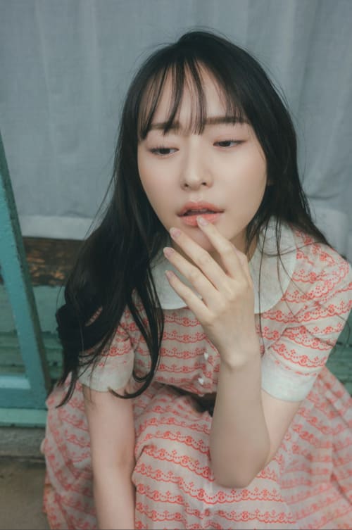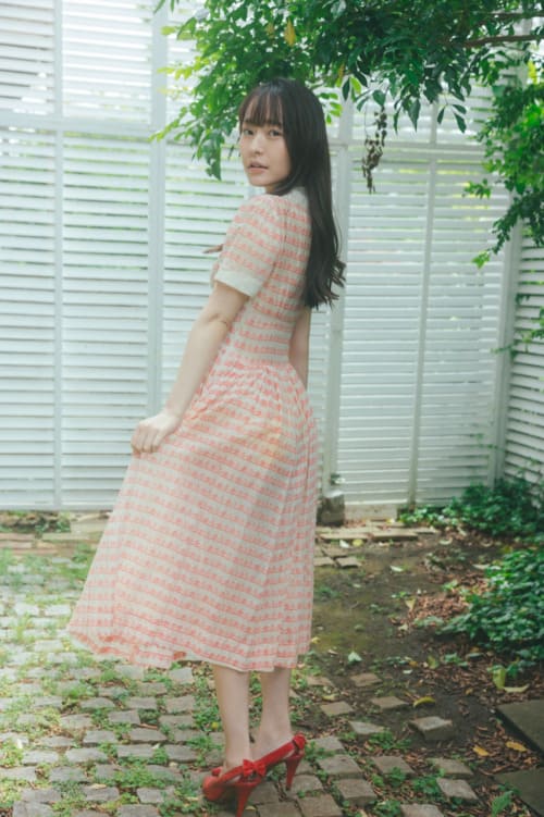 「フレンチポップなセクシードール」をテーマに、ガーリーな雰囲気のワンピース姿を脱いで水着姿を披露しました!レース生地の衣装から美しいヒップラインを見せました!